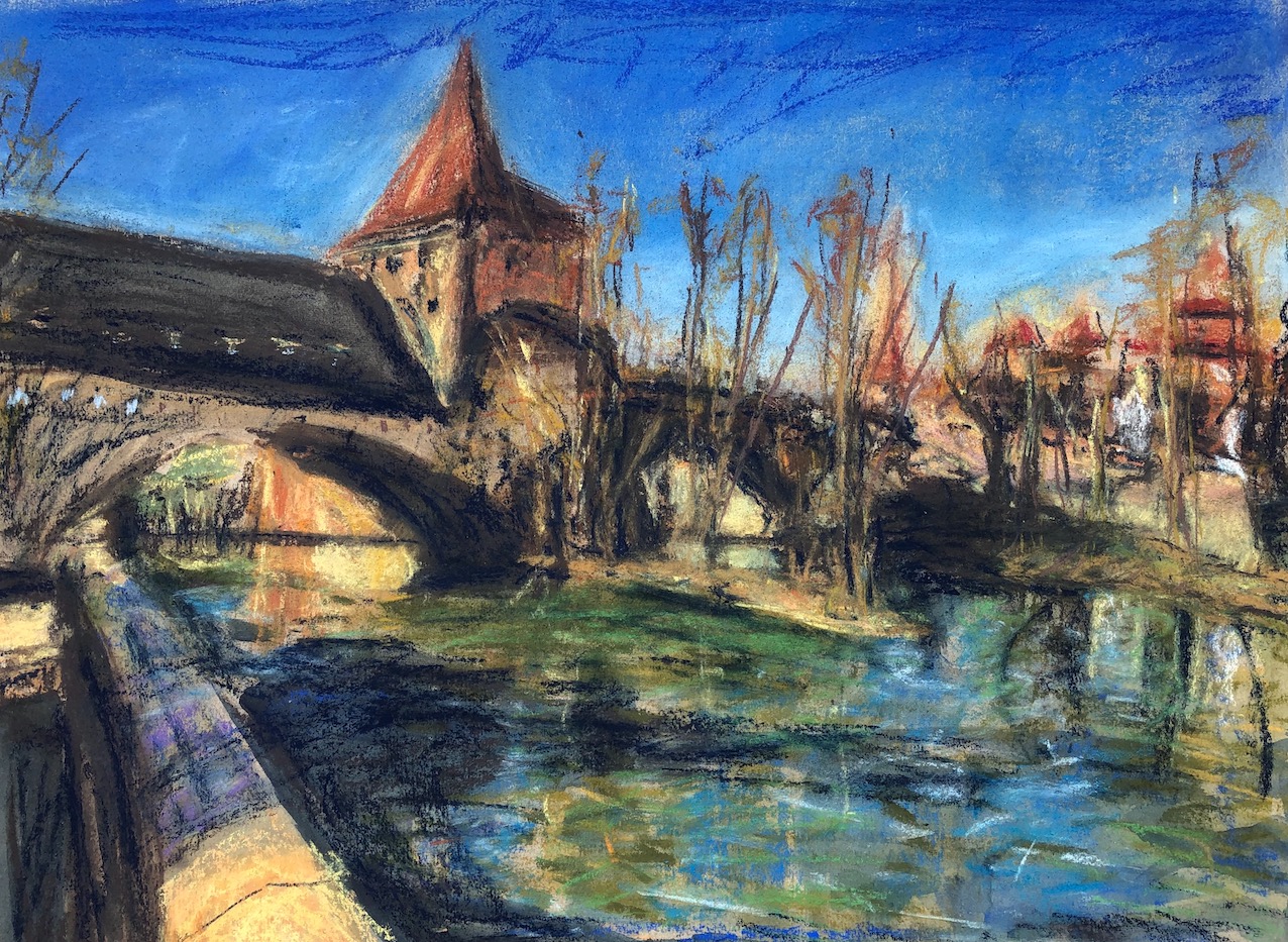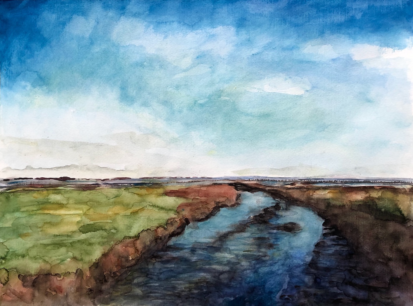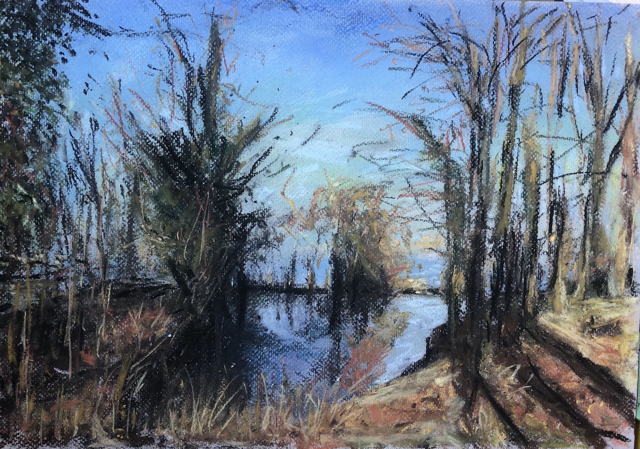 Licht und Dunkel, Wasser, Himmel, Wolken, Berge und grün, das wächst, so saftig… Oder karge Erde, Steine, Sand: Den Zauber einer Landschaft würde ich gern einfangen können, aber das gelingt auf Fotos soviel schneller und besser. Trotzdem,  schon das Nachvollziehen, das langsame Malen, die Beschäftigung damit tut gut. Und vielleicht gelingt durch viel Übung irgendwann eine kreative Aneignung und Umwandlung.