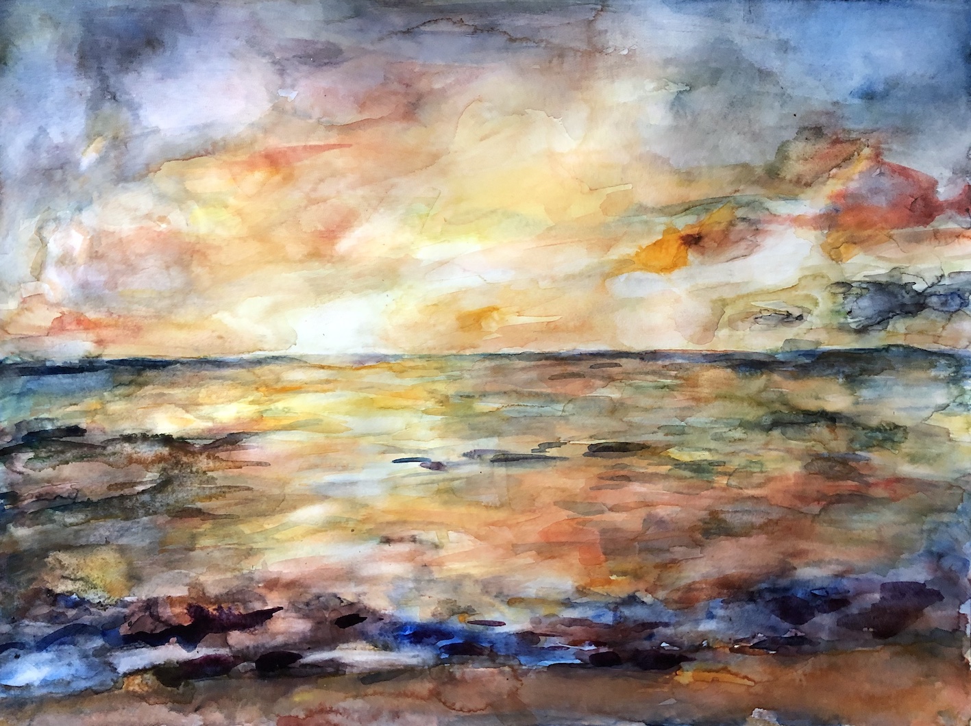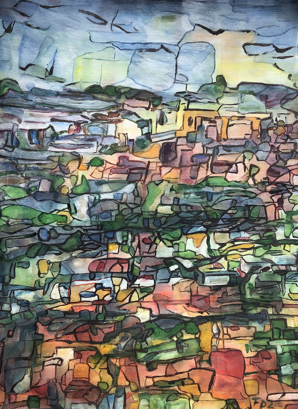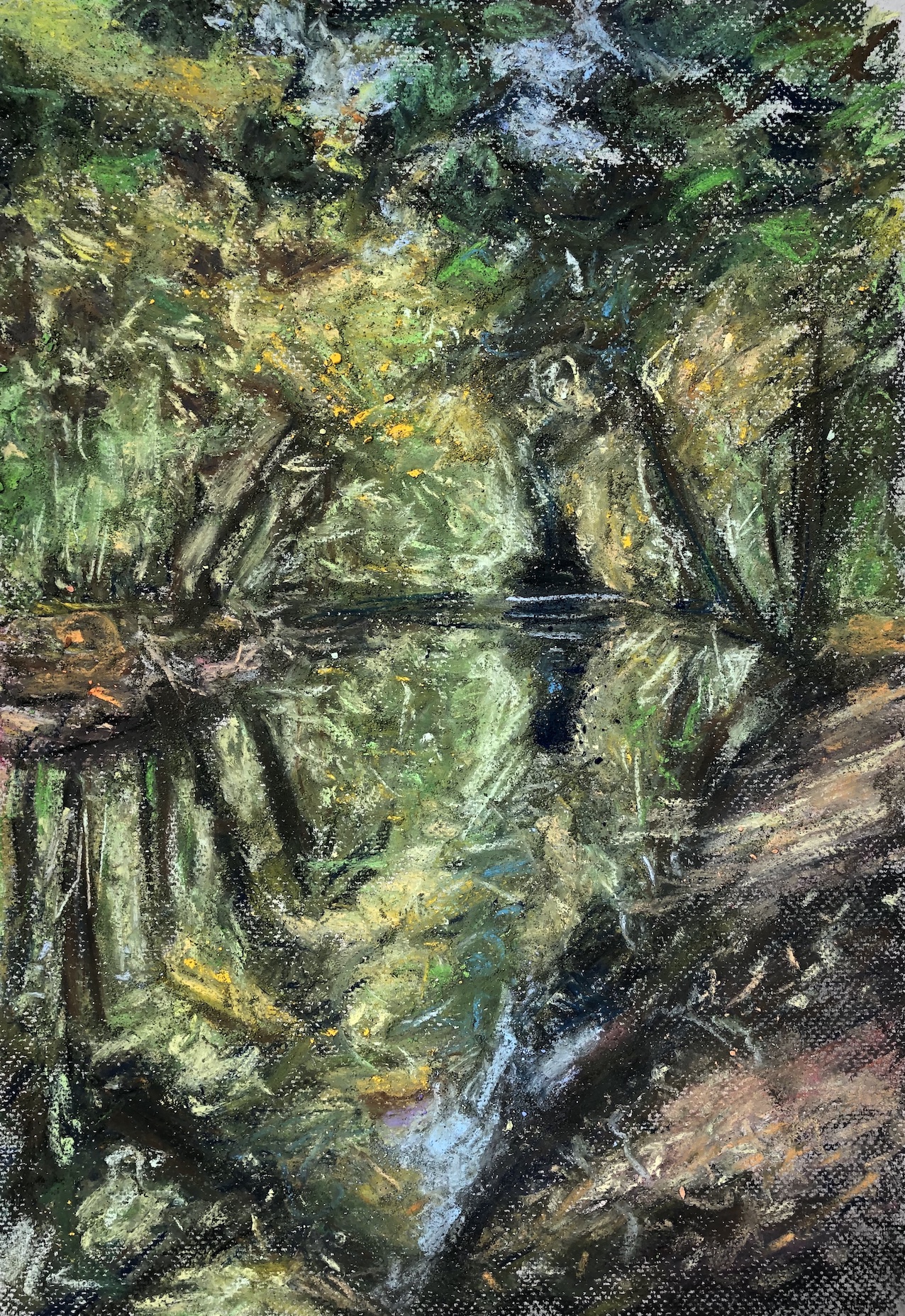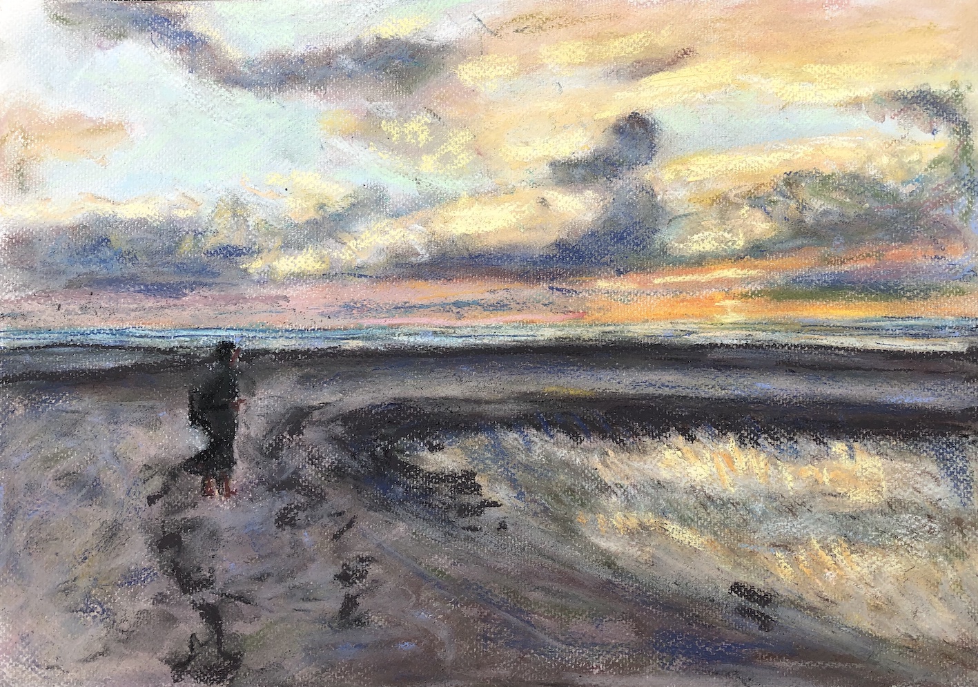 Licht und Dunkel, Wasser, Himmel, Wolken, Berge und grün, das wächst, so saftig… Oder karge Erde, Steine, Sand: Den Zauber einer Landschaft würde ich gern einfangen können, aber das gelingt auf Fotos soviel schneller und besser. Trotzdem,  schon das Nachvollziehen, das langsame Malen, die Beschäftigung damit tut gut. Und vielleicht gelingt durch viel Übung irgendwann eine kreative Aneignung und Umwandlung.